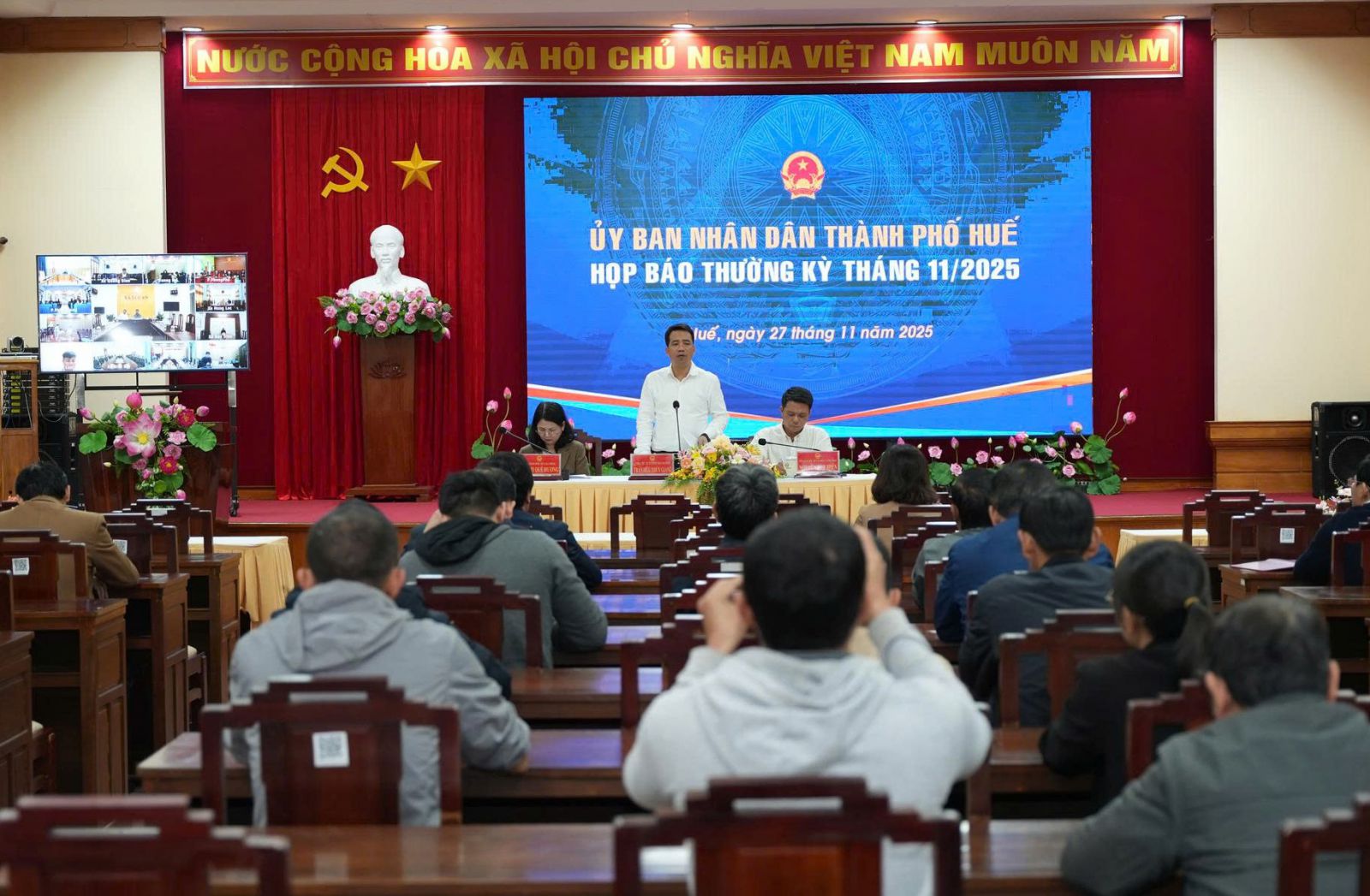 Chiều 27/11, UBND thành phố Huế tổ chức họp báo thường kỳ tháng 11 năm 2025. Chủ trì phiên họp có đồng chí Phó Chủ tịch UBND thành phố Trần Hữu Thùy Giang; Phó Giám đốc Sở Tài chính Võ Thị Quế Hương; Phó Giám đốc Sở Văn hoá và Thể thao Nguyễn Huy Hiển.