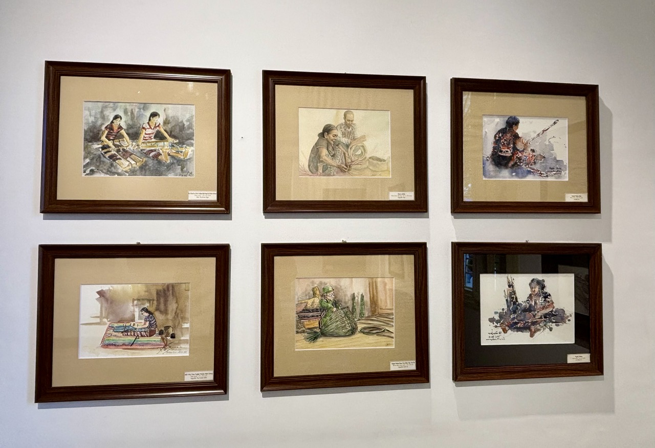 Các tác phẩm ký họa màu nước về đời sống và nghề truyền thống của đồng bào dân tộc miền núi A Lưới