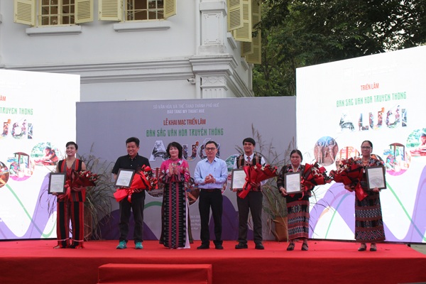 Trao hoa và chứng nhận cho các nghệ nhân tham gia tại triển lãm
