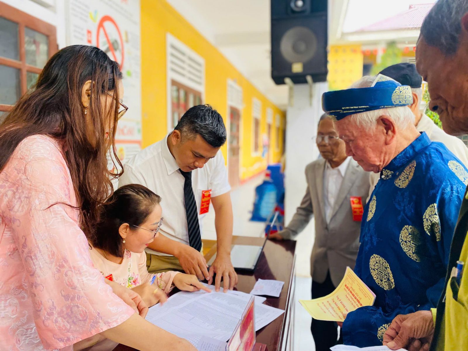 Tổ bầu cử hướng dẫn và hỗ trợ của tri tham gia bầu cử  tại Phường Kim Long