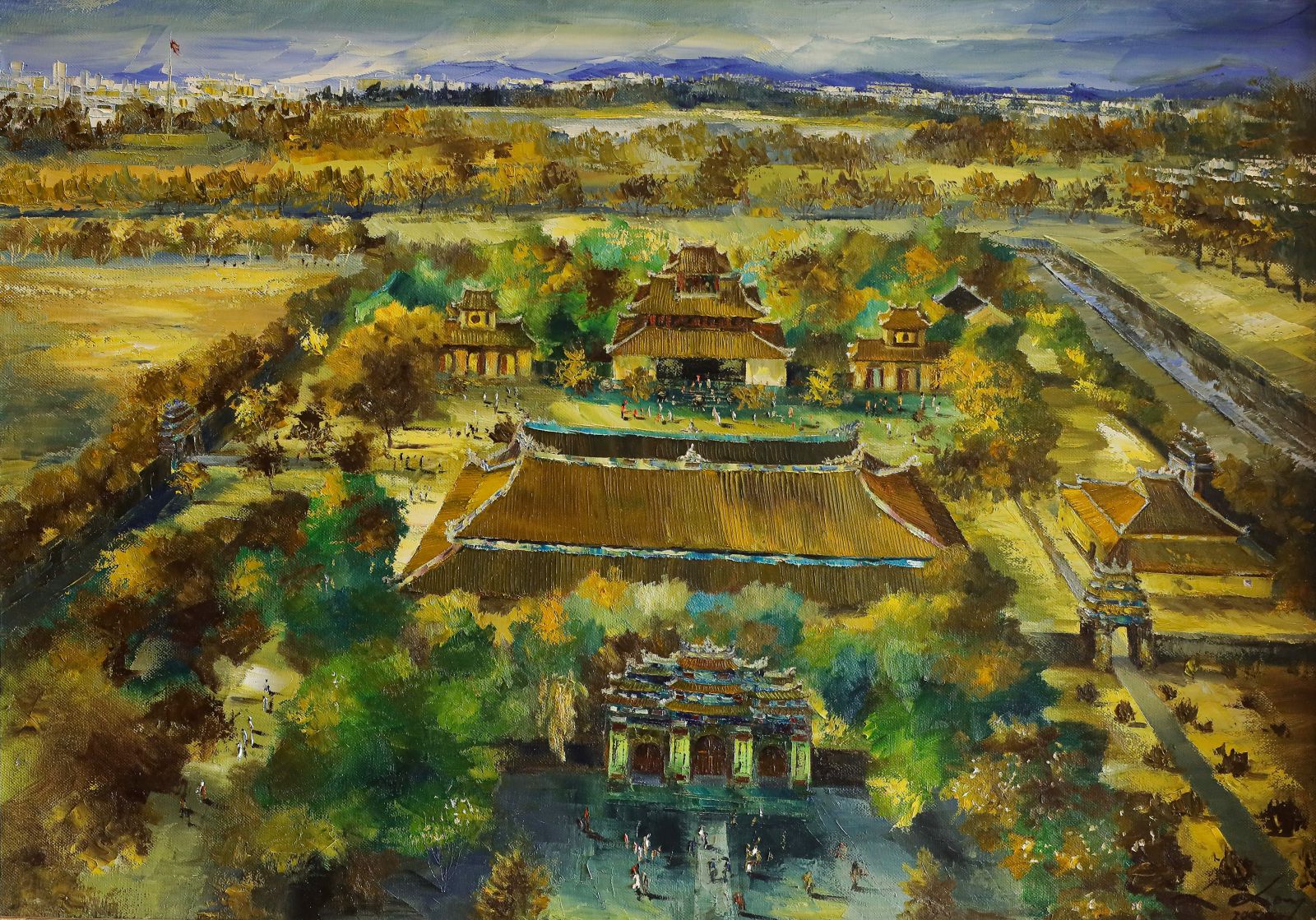 Hoàng cung xanh, (Sơn dầu trên vải) 100 x 140cm - Lê Hữu Long