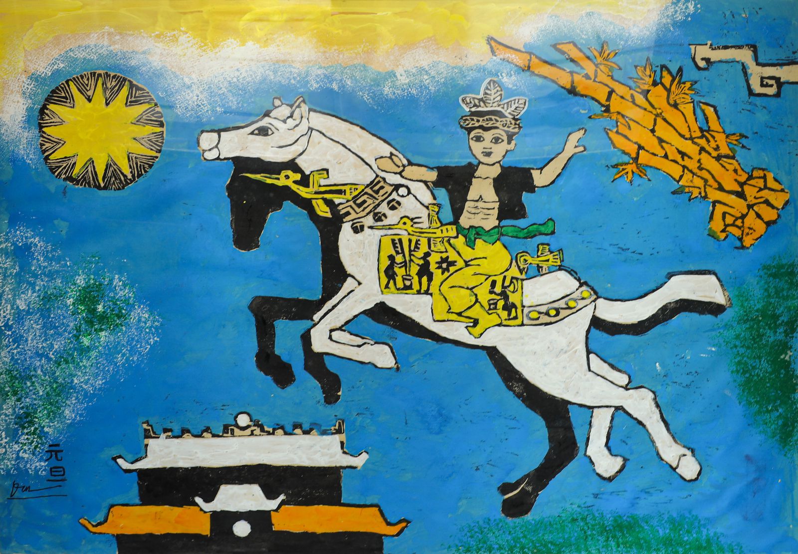 Huyền thoại Thánh Gióng, 80 x100cm (in khắc gỗ trên giấy) - Trần Nguyên Đán