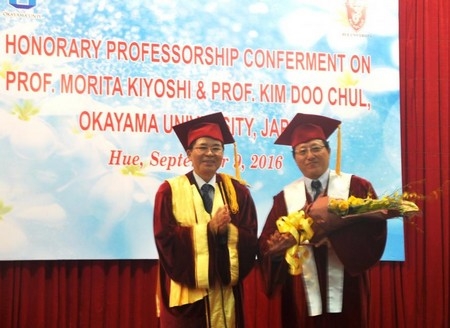 Giáo sư Morita Kiyoshi và Kim Doo Chul là các giáo sư thứ 25 và 26 được công nhận là giáo sư danh dự của Đại học Huế tính đến thời điểm này.