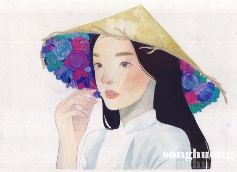 “Hoa trong nón” - Màu nước