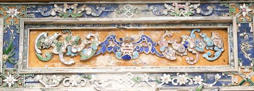 | Hồi văn trang trí với kiểu thức long “hóa”tại nóc Thế Tổ Miếu |