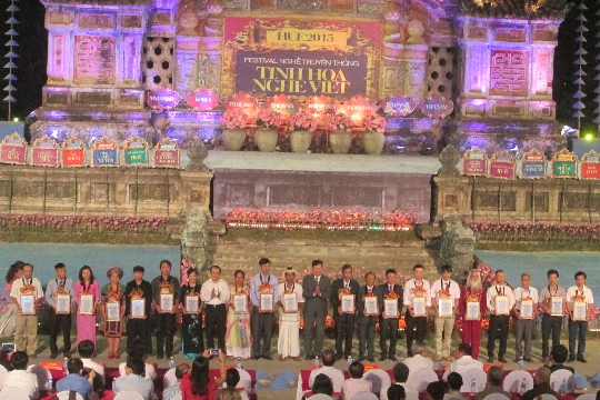SHO - Tối 2/5, tại sân khấu Bia Quốc Học, thành phố Huế đã diễn ra lễ bế mạc Festival Nghề truyền thống Huế 2015.