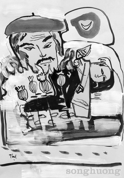 Sương xuống nặng, trắng bạc cả thung lũng Tẩn La, làm nhòa đôi mắt Thào A Phạ một thời sắc như dao Mèo dõi khắp xứ sở cao nguyên đá. Thằng A Lủ đầu đội chiếc mũ tròn bằng vải lanh, gồm tám miếng vải khâu ghép, đi lẩn trong mù, trong làn hoa phớt tím mơ mộng cả thung lũng. Chiếc gùi sau lưng nó đã gần đầy thứ quả hình cầu chín, màu vàng xám, cuống phình to ra, đỉnh quả núm nhô lên như đuôi lồng đèn. Bàn tay A Lủ hái quả thoăn thoắt, thoáng cái vặt trụi cả một khóm dày. Vín đi sau lưng chồng, áo chàm dính cỏ khô, xà cạp bết bùn nhầy, dù mới sinh dậy được hai tháng cũng ngược xuôi giữa nương anh túc, thỉnh thoảng ngó ngang ngó dọc đề phòng người lạ. Thào A Phạ tập tễnh bước qua những gờ đá, miệng luôn mồm gọi con: “A Lủ ơi, có muốn làm người tốt không A Lủ ơi!” Hai vợ chồng cậu trẻ dường như chẳng nghe tiếng bố, mặc, cứ hái cho đã tay cho đầy gùi, gạo dưới ngã ba Khứa đang chờ, thịt dê núi, Mao Đài tửu thằng Hạ chực tặng đang chờ nốt chuyến hàng, cả đám người mù mịt ngoài kia đang chờ cơn khói, mặc. Thằng Hạ ấy bao giờ cũng trả tiền nhiều hơn các lái khác lại còn khen vợ A Lủ đẹp nhất Tẩn La, A Lủ được Giàng thương thật đấy. Thào A Phạ đến gần lắm rồi, cận gùi A Lủ: “Có muốn làm người tốt không A Lủ ơi”. Vừa nói, Thào A Phạ khó nhọc vịn tay lên gùi A Lủ, chụp được một nắm quả vứt sồ trước mặt, gậy cụ phang bừa bãi vào hàng cây quả kết như những quả chùy vươn lên giữa mù sương. A Lủ thét: “Muốn làm người tốt nhưng không muốn làm người đói. Bố về đi...”. “Ma xấu bắt hồn mày rồi A Lủ ơi” - Thào A Phạ gào vào tai con, như đâm thấu những bông hoa tím gúc gắc. A Lủ vung tay gạt gậy bay xuống vực, Thào A Phạ ngã chúi chùi suýt ấp mặt xuống đất ướt, cũng may cô con dâu kịp níu vạt áo bố chồng. Một tay cụ chỉ mặt A Lủ: “Mày... mày... có phải là con tao, con Thào A Phạ không!”