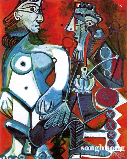 | “Female nude and Smoker” 1968 của P. Picasso. Dầu trên bố. Galerie Rosengart, Lucerne, (Tây Ban Nha) |